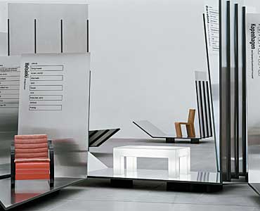 Anlässlich der Ausstellung „Designmuseen der Welt eingeladen durch die Neue Sammlung München“ wurde ein Ausstellungssystem entwickelt, das den von internationalen Designmuseen geschickten Exponaten eine eigene Aura verleiht.