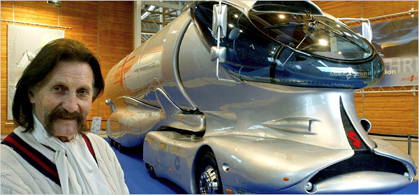 Luigi Colani and his truck with a round windshield.